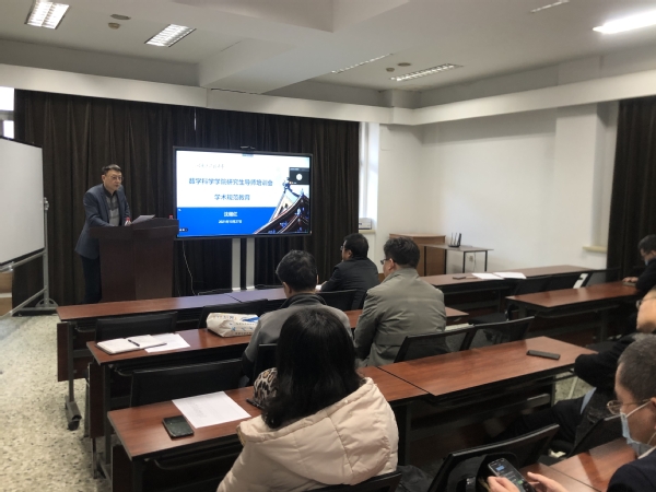 院长沈继红做了学术规范教育,他围绕《哈尔滨工程大学科研诚信建设与学术不端行为处理办法》,介绍部分学术不端案例,强调科研诚信的重要性,他强调教师发表论文要严格履行审批手续。希望各位研究生导师要做到关注学生、关爱学生,形成研究生导师、研究生辅导员、辅导员密切配合,形成协同育人合力。参会导师一致表示本次培训受益匪浅。