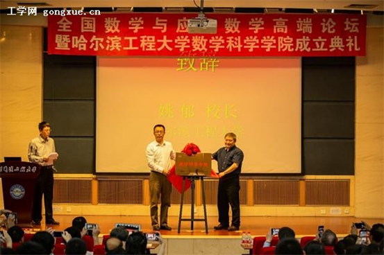 2019年5月25日,全国数学与应用数学高端论坛暨哈尔滨工程大学数学科学学院成立典礼在校举行。66载薪火相传,数学科学学院在新中国成立70周年之际独立建院,成为学校夯实基础特色办学的点睛之笔。国家自然科学基金委员会数学物理科学部主任江松院士、校长姚郁共同为学院揭牌。
