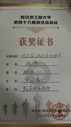 跳高 第四名 根据荣誉加分规则,给予文体分0.5分。